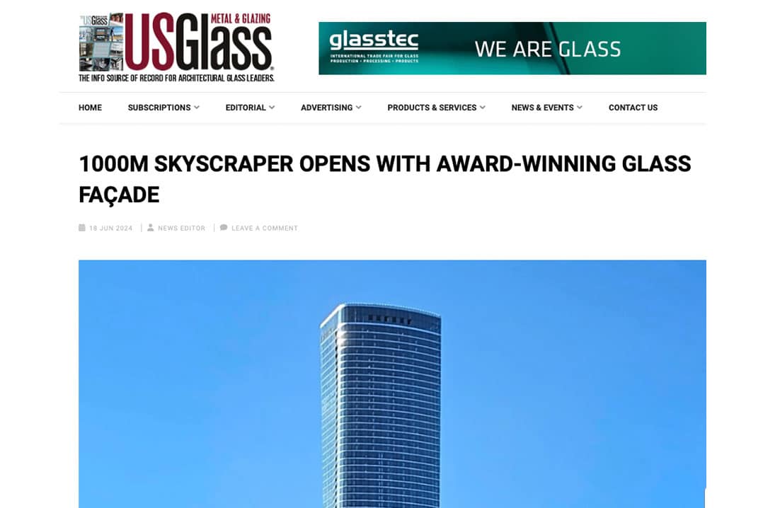 US Glass Mag: 1000M Skyscraper Opens with Award-Winning Glass Façade